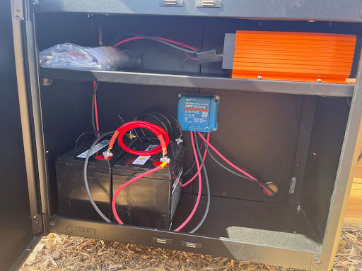 We built an agrivoltaics system at Desert Botanical Garden community Garden Gardens . This system provides a source of clean energy so farmers and volunteers can charge their power tools and other electrical equipment. Produce grown is donated to food banks and school cafeterias. In this system we host workshops to teach students about agrivoltaics and gardening.